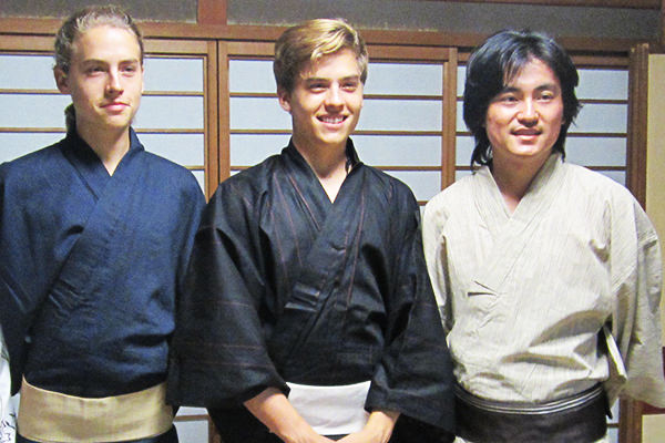 そして、京ごころへ移動し、そこで三人は京都おもてなし大使から京都の浴衣の着付けをしていただき風変わり。ディランとコールは、初めて浴衣を着たそうですがとてもお似合いで、本人たちもとても喜んでおりました。