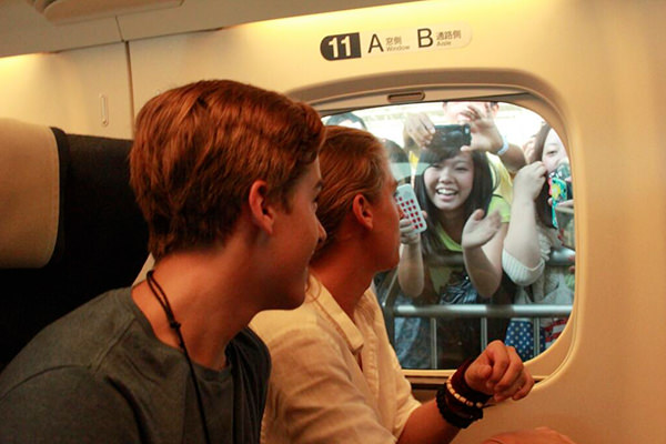 そして、新大阪駅へ移動。当駅では、ファンの方達が待ち構えておりファンと写真撮影やサインなどを行いました。ファンの方達の話によると、朝早くから駅でディランとコールと小山田会長たちが到着するのをチームに分かれて待ち伏せしていたそうです。すごいです。