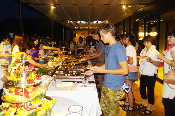 その夜は、岡山国際ホテルにて、全国各地から来られた100名前後の参加者を迎えて国際交流イベント「アメリカン・ナイト」を開催。