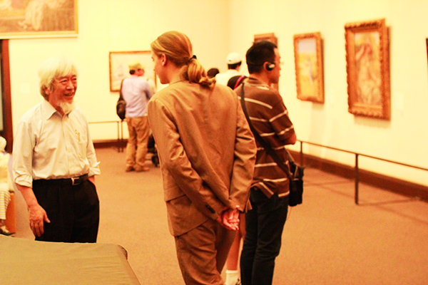 当館を運営する公益財団法人大原美術館の大原謙一郎理事長や副館長及び当館のスタッフの方達あげて、キフジャパン一同を歓迎してくださりました。大原理事長は、英語が堪能でディランとコールには、英語で当館の絵や歴史などを説明してくださり館内を案内してくださりました。ディランとコールも、絵にはとても興味を持っておりとても関心を持ち、館内を満喫していました。暑い中、わざわざキフジャパン一同を迎えてくださり心より感謝。その後、ボランティアの方達に連れられて倉敷美観地区全体を散策し、白かべの伝統的建造物などを見学。