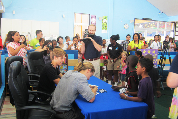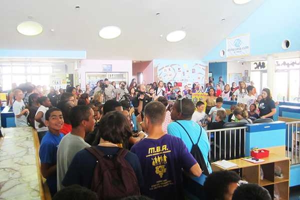 午後からは、山口県へ移動し岩国米軍基地を訪問しました。山口駅まで、米軍基地の方達に迎えに来ていただきました。当基地では、200名前後の米軍兵の家族や10代の若者たちを対象に、1時間前後サイン会と写真撮影を実施。参加者はとても喜んでおりました。