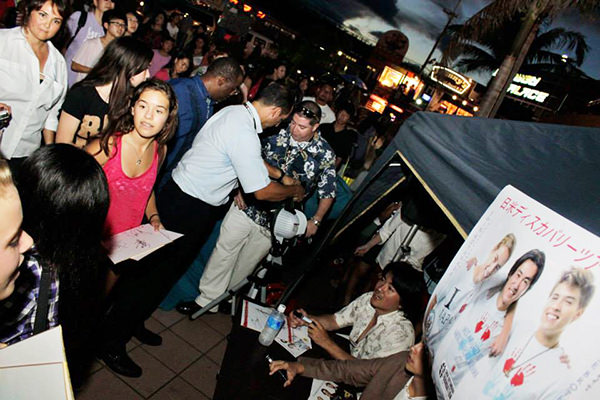 演技が終わった後、1時間弱サイン会と写真撮影を参加していただいた方達一人一人に行いました。参加者は、地元とアメリカ人の青年たちが中心で、信じられない表情でサインをいただいており、時には号泣してサインをもらい写真を撮ってもらう姿もありました。