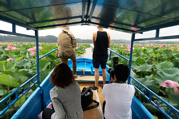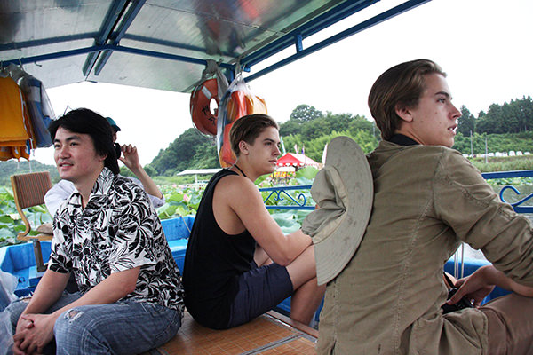 ボートの中では、会話の一環としてきっと天国はこんな感じではないだろうか、と話をしていました。ディランとコール、小山田会長もこのような広大なハスの花を見るのは初めてで、とても満喫しておりました。30分ぐらいボートで満喫したのち、同行していただいたKIF宮城の地元関係者、栗原市の方達や宮城県の衆議院議員の方と記念撮影を行いました。