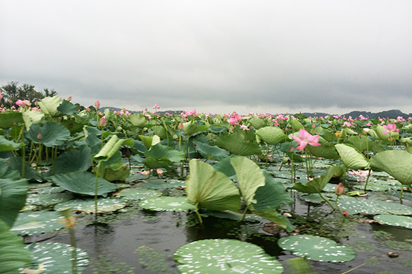 人口6万8千人前後の栗原市にある有名な観光地「伊豆沼・内沼はすまつり」を訪問しました。ちょうど、ハスの花の開花時時期で、見事に大きな淡いピンク色のハスの花が沼一面に咲いていました。準備されていたボートに関係者と乗り込み、沼面積は387ha(東京ドーム83個分)、海抜6m、最大水深1.4mと東北地方最大の面積低地湖沼を満喫しました。見渡す限りが綺麗なハスの花の楽園。