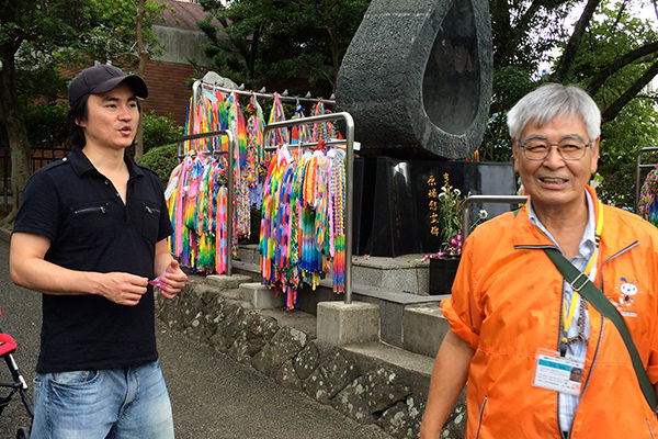 当館に到着後、ボランティアで当館の案内を手伝ってくださっている方にご案内していただき、館内を回りました。昨年は広島原爆資料館を訪問しましたが、当館の歴史などを説明していただきました。忘れてはいけない歴史だと感じておりました。その後、屋外に出て、平和公園を案内人の方と一緒に散策し、その当園に関する歴史などもいろいろ説明していただきました。