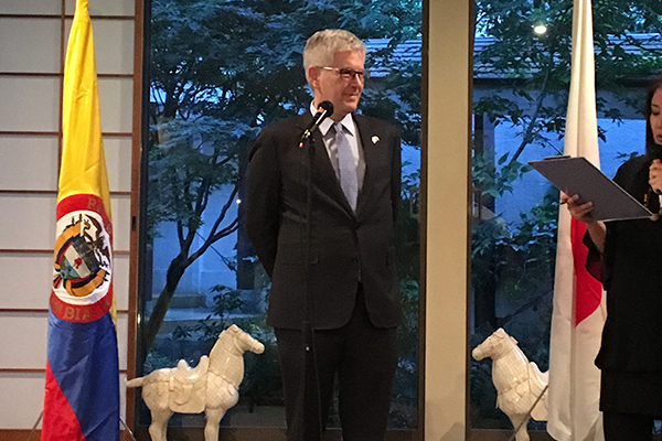 ガブリエル・ドゥケ 駐日コロンビア大使から冒頭の挨拶があり、ニア・ライト事務総長のスピーチが10分、その後大使館関係者によるコロンビアの魅力を紹介さいるプレゼン、その後、小山田会長による自身のコロンビアでの体験談が紹介されました。参加者の皆様、興味深くそれぞれのプレゼンを耳を傾けて聞いておりました。