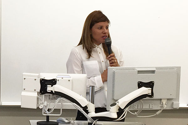 南米コロンビアを含み南米地域では、日本と違い、ミドルネームや両親の姓をそれぞれ自分の姓に加えることにより、とても長い名前になることなどを話していただきました。また、結婚後も嫁は、夫の姓に名前を変更しないことなど日本との違いについて強調しました。英語Aクラスでは、とても英語が得意なクラスで、学生たちはとても積極的に話を聞き、質疑応答でも英語で質問をしていました。