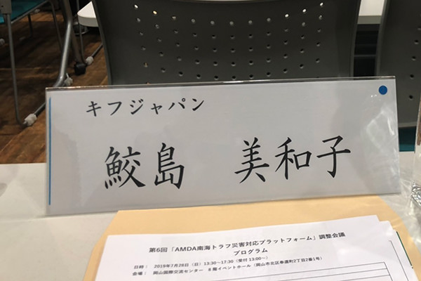 特定非営利活動法人アムダ主催第6回「AMDA南海トラフ災害対応プラットフォーム」調整会議が2019年7月28日、岡山市北区奉還町の岡山国際交流センターで開かれ、キフジャパンを代表して京都市から山中満子さんと鹿児島市から鮫島美和子さんが参加しました。