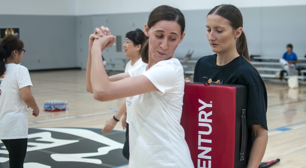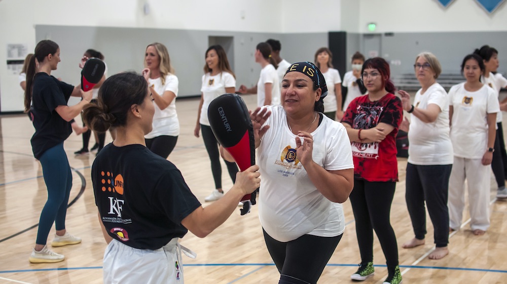 参加者のほとんどは、過去に格闘技の経験がなく、護身術セミナーに参加するのが初めてでした。参加者の何人かは、子供、夫、友人を連れてセミナーを見に行きました。すべての参加者は、この新しいジェンダーに基づく暴力防止プログラムについて熱心に学び、米国で世界最高の女性空手インストラクターによる90分間のトレーニングを受けました。