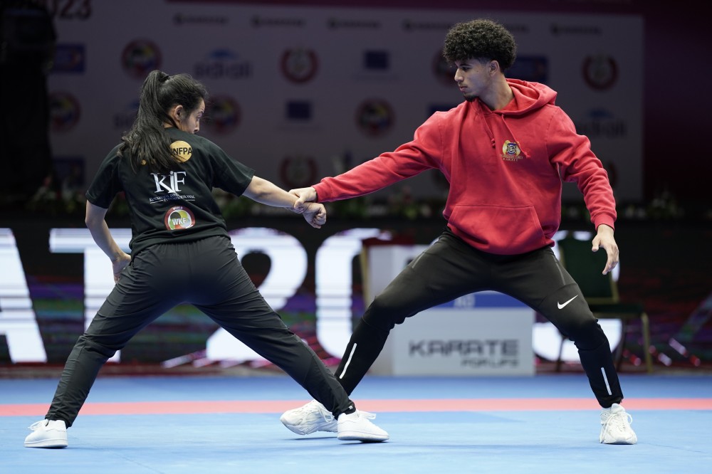 デモストレーションは、ガーディアン・ガールズ空手認定の女性空手家指導者エイミー・コーネル(Amy Connell)さんと同じく認定女性空手家指導者でモロッコ空手連盟のサルマ・アシラ(Salma Assila)の2名が中心となり、演舞を披露。