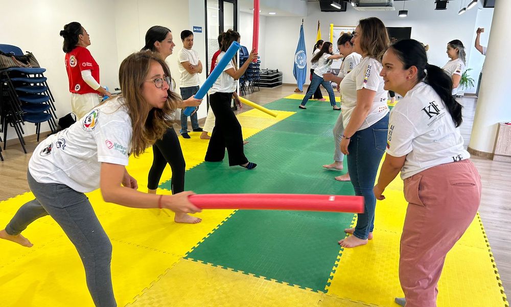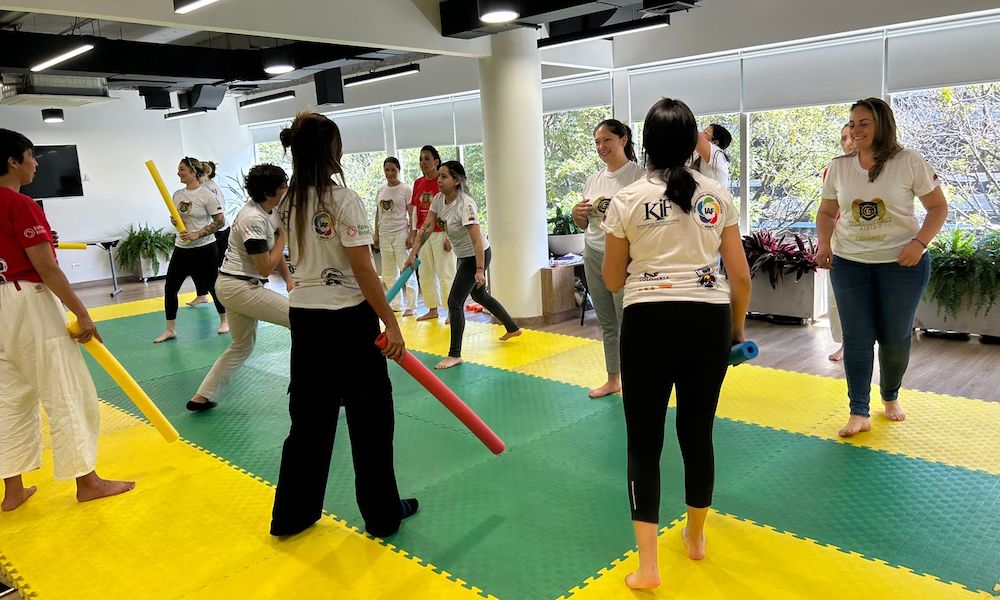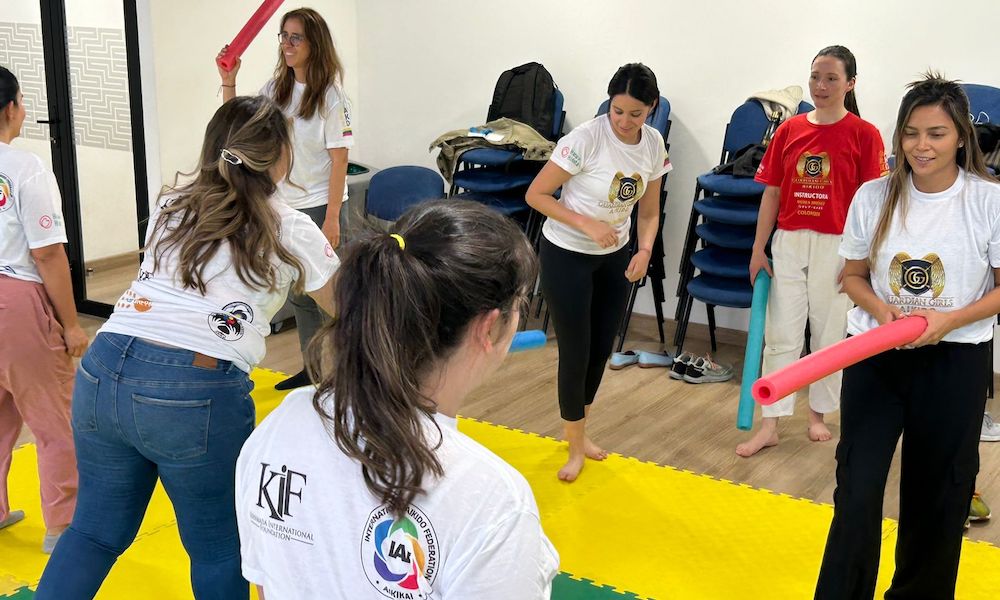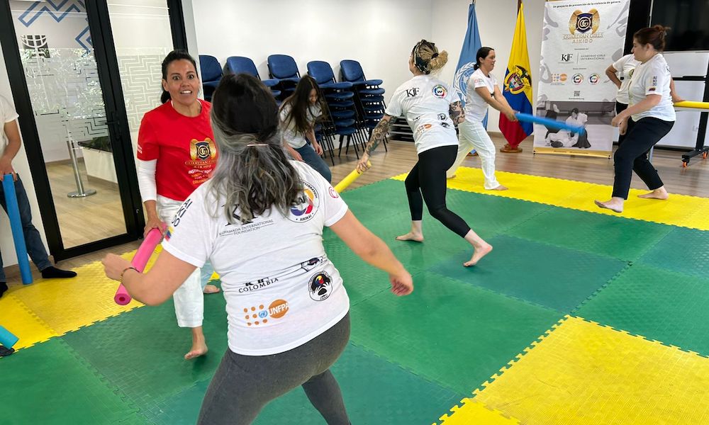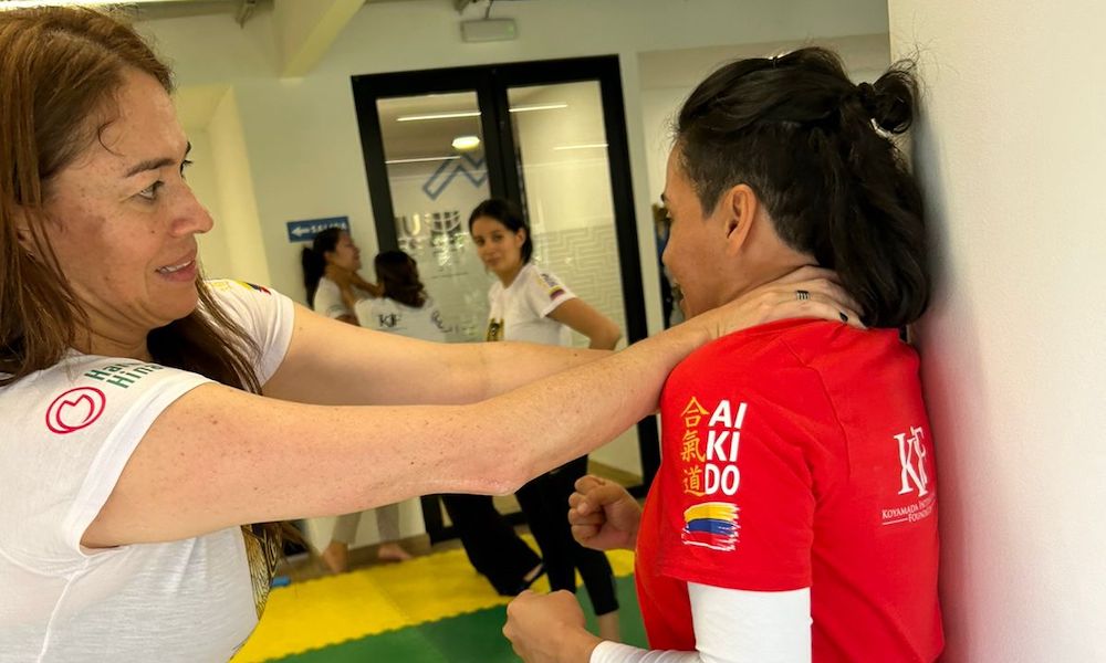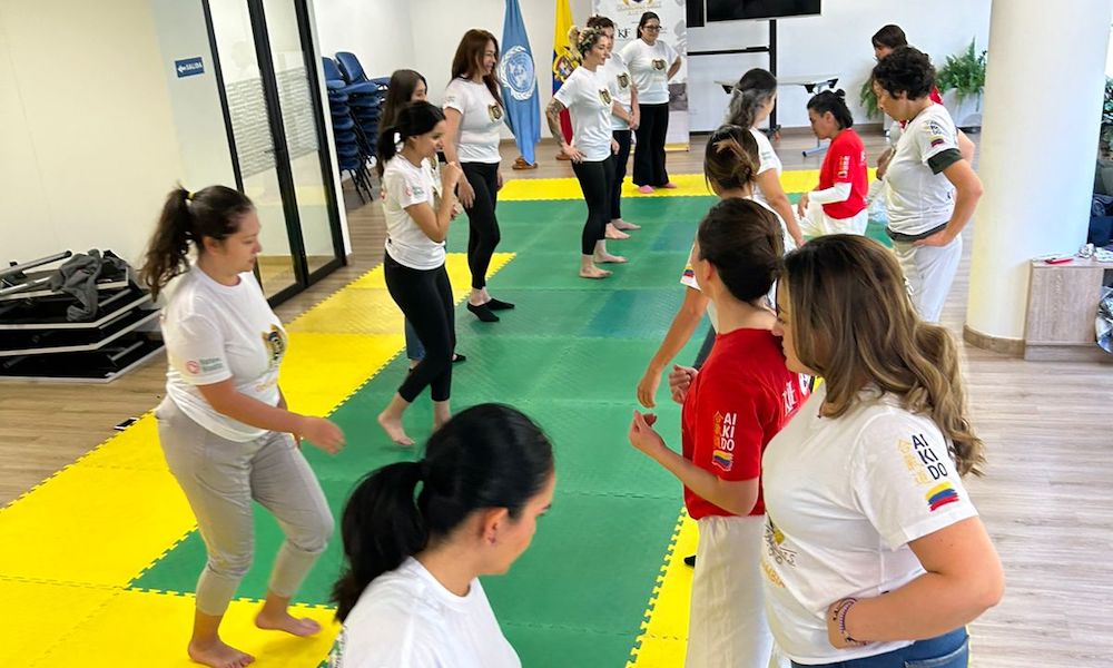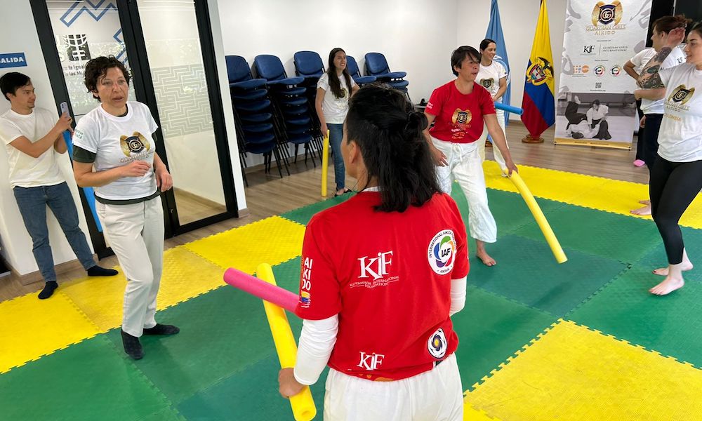 2024年8月30日(金)、コロンビアで今年2月に新発足した「ガーディアン・ガールズ・合気道」(Guardian Girls Aikido)プロジェクトの一環として、キフ・コロンビア(KIF Colombia)と国連人口基金コロンビア(UNFPA Colombia)の共催で、合気道の護身術セミナー『10秒で生き延びる』が開催されました。このイベントは、コロンビアの首都ボゴタ市内にある国連機関の施設で、国連の女性職員を対象に、午後12時から午後2時まで実施されました。国連機関の女性職員のみを対象にしたガーディアン・ガールズ事業は、これが初めて。